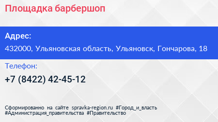 Площадка, барбершоп по адресу 432000, Ульяновская область, Ульяновск, Гончарова, 18 в дальнейшем Организация, размещена в следующих категориях: