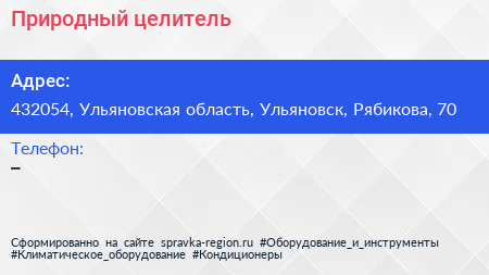 Природный целитель по адресу 432054, Ульяновская область, Ульяновск, Рябикова, 70 в дальнейшем Организация, размещена в следующих категориях: