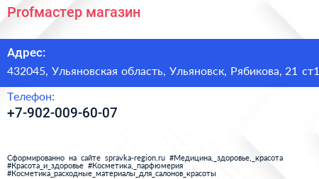 Profмастер, магазин по адресу 432045, Ульяновская область, Ульяновск, Рябикова, 21 ст1 в дальнейшем Организация, размещена в следующих категориях: