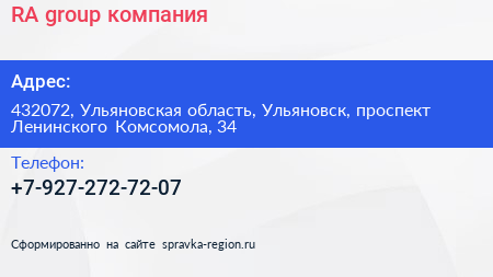 RA group, компания по адресу 432072, Ульяновская область, Ульяновск, проспект Ленинского Комсомола, 34 в дальнейшем Организация, размещена в следующих категориях: