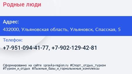 Родные люди по адресу 432000, Ульяновская область, Ульяновск, Спасская, 5 в дальнейшем Организация, размещена в следующих категориях: