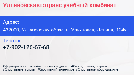 Ульяновскавтотранс, учебный комбинат по адресу 432000, Ульяновская область, Ульяновск, Ленина, 104а в дальнейшем Организация, размещена в следующих категориях: