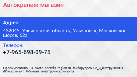 Автокрепеж, магазин по адресу 432045, Ульяновская область, Ульяновск, Московское шоссе, 62а в дальнейшем Организация, размещена в следующих категориях: