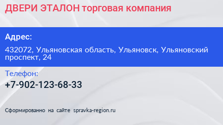 ДВЕРИ ЭТАЛОН, торговая компания по адресу 432072, Ульяновская область, Ульяновск, Ульяновский проспект, 24 в дальнейшем Организация, размещена в следующих категориях: