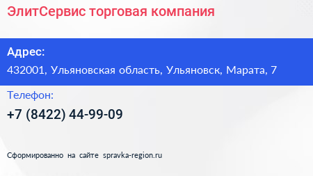 ЭлитСервис, торговая компания по адресу 432001, Ульяновская область, Ульяновск, Марата, 7 в дальнейшем Организация, размещена в следующих категориях: