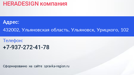 HERADESIGN, компания по адресу 432002, Ульяновская область, Ульяновск, Урицкого, 102 в дальнейшем Организация, размещена в следующих категориях: