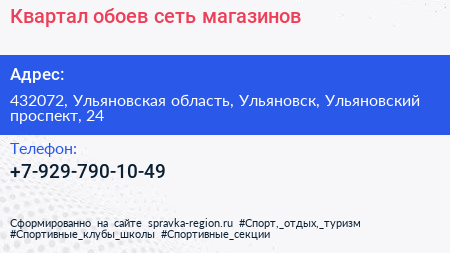 Квартал обоев, сеть магазинов по адресу 432072, Ульяновская область, Ульяновск, Ульяновский проспект, 24 в дальнейшем Организация, размещена в следующих категориях: