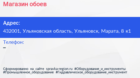 Магазин обоев по адресу 432001, Ульяновская область, Ульяновск, Марата, 8 к1 в дальнейшем Организация, размещена в следующих категориях: