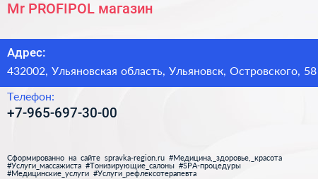Mr.PROFIPOL, магазин по адресу 432002, Ульяновская область, Ульяновск, Островского, 58 в дальнейшем Организация, размещена в следующих категориях: