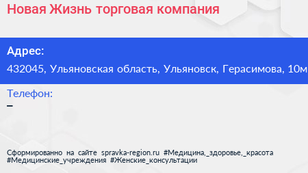 Новая Жизнь, торговая компания по адресу 432045, Ульяновская область, Ульяновск, Герасимова, 10м в дальнейшем Организация, размещена в следующих категориях: