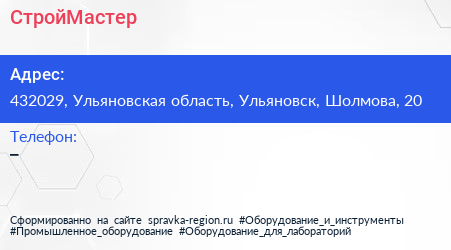 СтройМастер по адресу 432029, Ульяновская область, Ульяновск, Шолмова, 20 в дальнейшем Организация, размещена в следующих категориях: