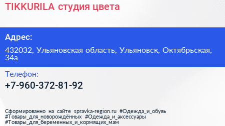 TIKKURILA, студия цвета по адресу 432032, Ульяновская область, Ульяновск, Октябрьская, 34а в дальнейшем Организация, размещена в следующих категориях: