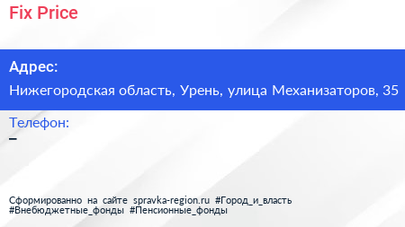 Fix Price по адресу Нижегородская область, Урень, улица Механизаторов, 35 в дальнейшем Организация, размещена в следующих категориях: