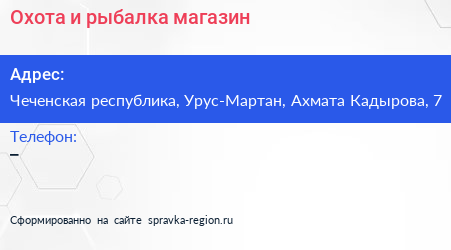 Охота и рыбалка, магазин по адресу Чеченская республика, Урус-Мартан, Ахмата Кадырова, 7 в дальнейшем Организация, размещена в следующих категориях: