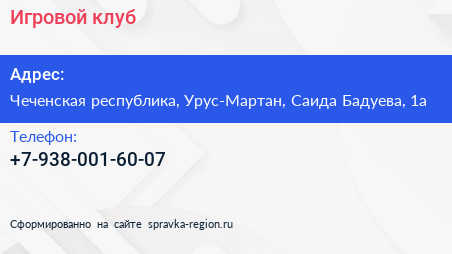 Игровой клуб по адресу Чеченская республика, Урус-Мартан, Саида Бадуева, 1а в дальнейшем Организация, размещена в следующих категориях: