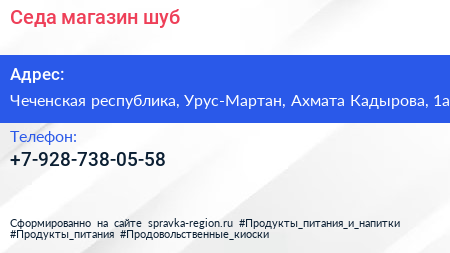 Седа, магазин шуб по адресу Чеченская республика, Урус-Мартан, Ахмата Кадырова, 1а в дальнейшем Организация, размещена в следующих категориях: