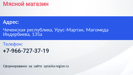 Мясной магазин по адресу Чеченская республика, Урус-Мартан, Магомеда Индербиева, 135а в дальнейшем Организация, размещена в следующих категориях: