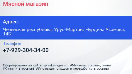 Мясной магазин по адресу Чеченская республика, Урус-Мартан, Нурдина Усамова, 14Б в дальнейшем Организация, размещена в следующих категориях: