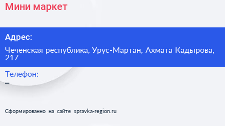 Мини-маркет по адресу Чеченская республика, Урус-Мартан, Ахмата Кадырова, 217 в дальнейшем Организация, размещена в следующих категориях: