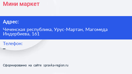 Мини-маркет по адресу Чеченская республика, Урус-Мартан, Магомеда Индербиева, 161 в дальнейшем Организация, размещена в следующих категориях: