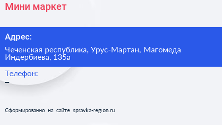 Мини-маркет по адресу Чеченская республика, Урус-Мартан, Магомеда Индербиева, 135а в дальнейшем Организация, размещена в следующих категориях: