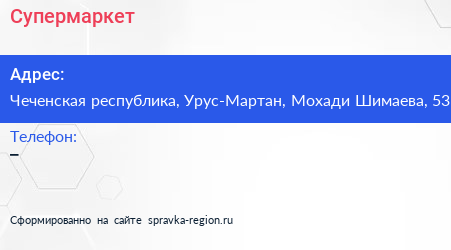 Супермаркет по адресу Чеченская республика, Урус-Мартан, Мохади Шимаева, 53 в дальнейшем Организация, размещена в следующих категориях: