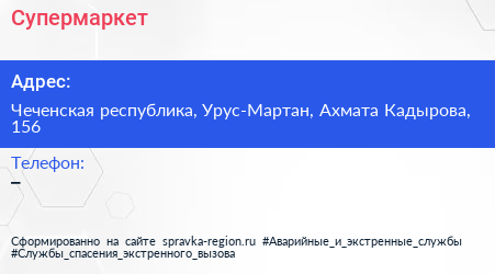 Супермаркет по адресу Чеченская республика, Урус-Мартан, Ахмата Кадырова, 156 в дальнейшем Организация, размещена в следующих категориях: