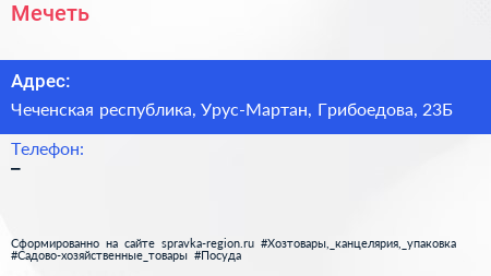 Мечеть по адресу Чеченская республика, Урус-Мартан, Грибоедова, 23Б в дальнейшем Организация, размещена в следующих категориях: