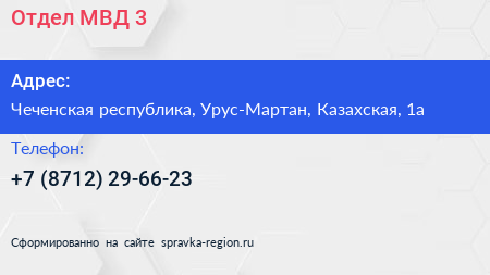 Отдел МВД №3 по адресу Чеченская республика, Урус-Мартан, Казахская, 1а в дальнейшем Организация, размещена в следующих категориях: