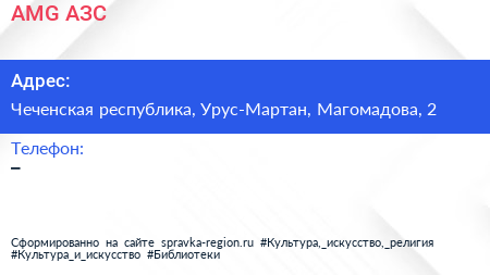 AMG, АЗС по адресу Чеченская республика, Урус-Мартан, Магомадова, 2 в дальнейшем Организация, размещена в следующих категориях: