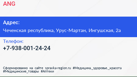 ANG по адресу Чеченская республика, Урус-Мартан, Ингушская, 2а в дальнейшем Организация, размещена в следующих категориях: