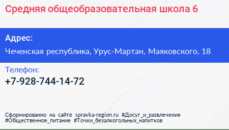 Средняя общеобразовательная школа №6 по адресу Чеченская республика, Урус-Мартан, Маяковского, 18 в дальнейшем Организация, размещена в следующих категориях: