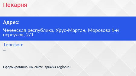Пекарня по адресу Чеченская республика, Урус-Мартан, Морозова 1-й переулок, 2/1 в дальнейшем Организация, размещена в следующих категориях: