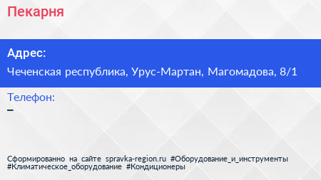 Пекарня по адресу Чеченская республика, Урус-Мартан, Магомадова, 8/1 в дальнейшем Организация, размещена в следующих категориях: