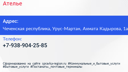 Ателье по адресу Чеченская республика, Урус-Мартан, Ахмата Кадырова, 1а в дальнейшем Организация, размещена в следующих категориях: