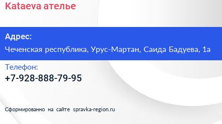 Kataeva, ателье по адресу Чеченская республика, Урус-Мартан, Саида Бадуева, 1а в дальнейшем Организация, размещена в следующих категориях: