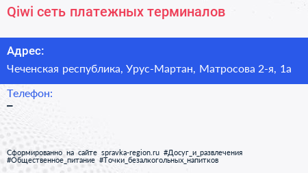 Qiwi, сеть платежных терминалов по адресу Чеченская республика, Урус-Мартан, Матросова 2-я, 1а в дальнейшем Организация, размещена в следующих категориях: