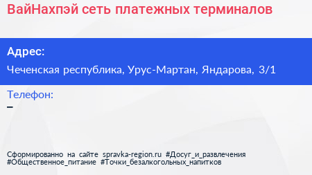 ВайНахпэй, сеть платежных терминалов по адресу Чеченская республика, Урус-Мартан, Яндарова, 3/1 в дальнейшем Организация, размещена в следующих категориях: