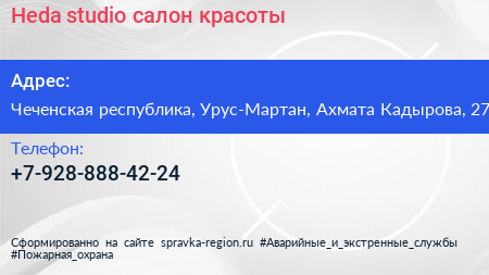 Heda studio, салон красоты по адресу Чеченская республика, Урус-Мартан, Ахмата Кадырова, 27 в дальнейшем Организация, размещена в следующих категориях: