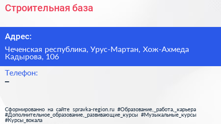 Строительная база по адресу Чеченская республика, Урус-Мартан, Хож-Ахмеда Кадырова, 106 в дальнейшем Организация, размещена в следующих категориях: