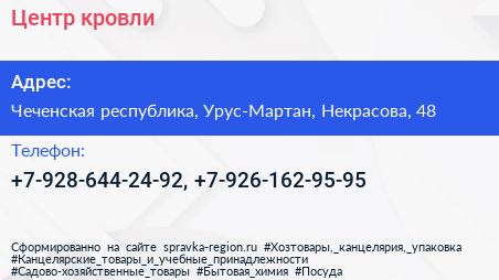 Центр кровли по адресу Чеченская республика, Урус-Мартан, Некрасова, 48 в дальнейшем Организация, размещена в следующих категориях:
