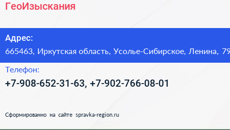 ГеоИзыскания по адресу 665463, Иркутская область, Усолье-Сибирское, Ленина, 79 в дальнейшем Организация, размещена в следующих категориях: