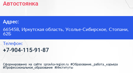 Автостоянка по адресу 665458, Иркутская область, Усолье-Сибирское, Стопани, 62Б в дальнейшем Организация, размещена в следующих категориях: