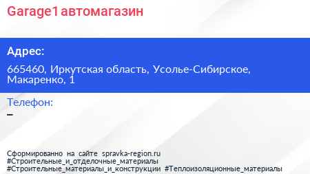 Garage1, автомагазин по адресу 665460, Иркутская область, Усолье-Сибирское, Макаренко, 1 в дальнейшем Организация, размещена в следующих категориях: