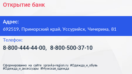 Открытие, банк по адресу 692519, Приморский край, Уссурийск, Чичерина, 81 в дальнейшем Организация, размещена в следующих категориях: