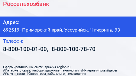 Россельхозбанк по адресу 692519, Приморский край, Уссурийск, Чичерина, 93 в дальнейшем Организация, размещена в следующих категориях: