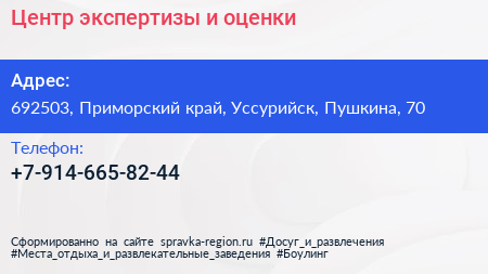 Центр экспертизы и оценки по адресу 692503, Приморский край, Уссурийск, Пушкина, 70 в дальнейшем Организация, размещена в следующих категориях: