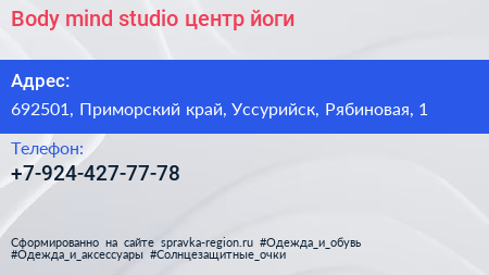 Body & mind studio, центр йоги по адресу 692501, Приморский край, Уссурийск, Рябиновая, 1 в дальнейшем Организация, размещена в следующих категориях: