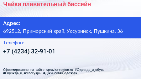 Чайка, плавательный бассейн по адресу 692512, Приморский край, Уссурийск, Пушкина, 36 в дальнейшем Организация, размещена в следующих категориях: