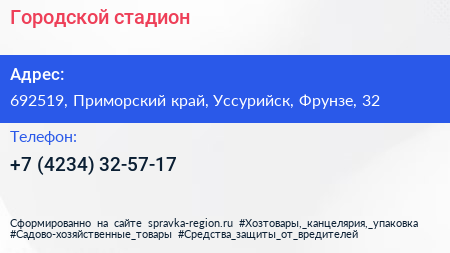 Городской стадион по адресу 692519, Приморский край, Уссурийск, Фрунзе, 32 в дальнейшем Организация, размещена в следующих категориях: